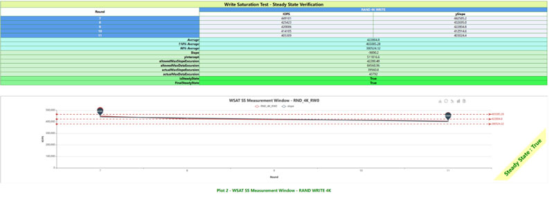 SNIA为消费级SSD和企业级SSD都制定了相应的性能测试规范,基于相同的测试配置,使得不同厂商、不同型号的SSD测试结果具备可比性。整体来看,PBlaze7 7940无论顺序读写带宽还是随机读写IOPS都非常稳定,几乎没有特别大的抖动,很快就能进入稳态。