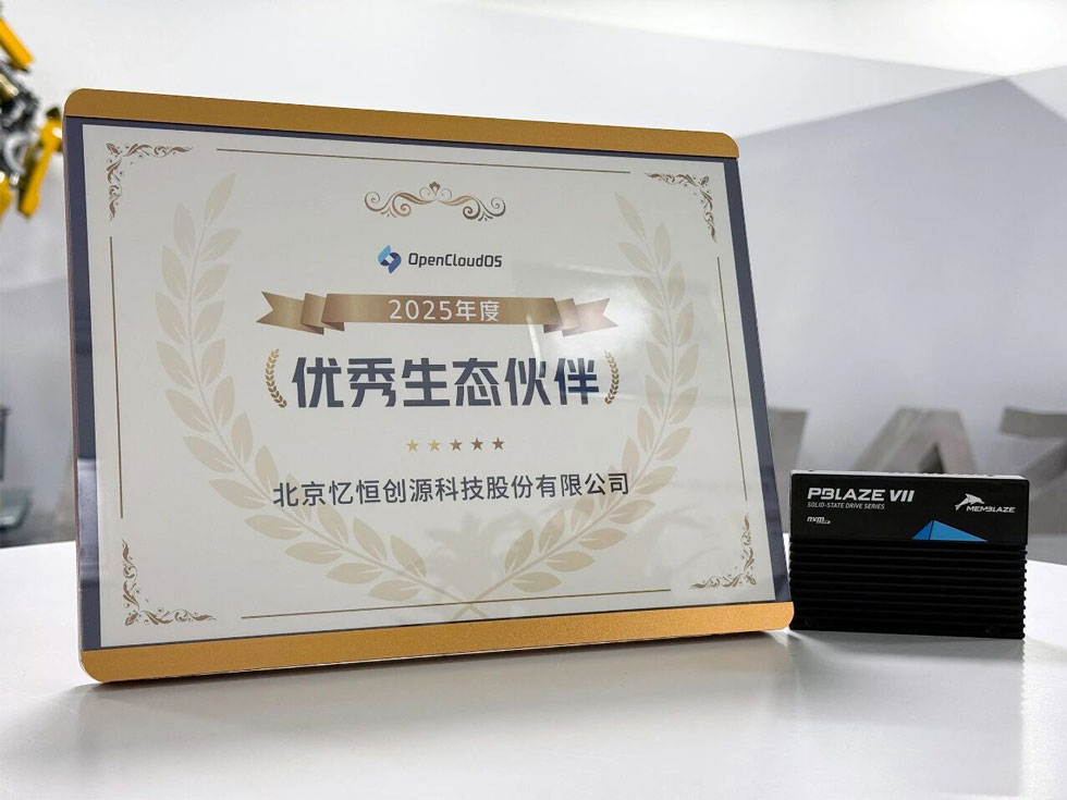12月6日,2025 OpenCloudOS操作系统生态大会在北京召开。本届大会以“以生态之力,让OS更懂未来”为主题,围绕AI时代的系统协同、技术创新与产业实践展开深入交流。大会期间,北京忆恒创源科技股份有限公司(Memblaze)荣获OpenCloudOS社区授予的“优秀生态伙伴”奖。这一荣誉不仅肯定了忆恒创源在国产操作系统生态中的持续投入,也彰显了高性能存储在国产基础软件应用与发展中的关键作用。